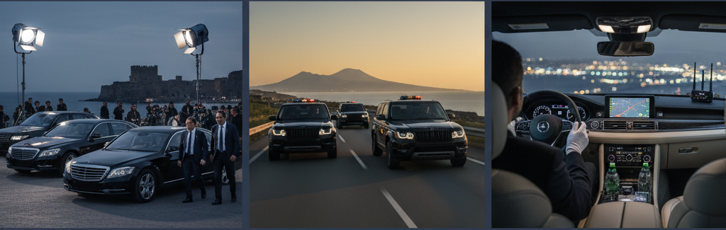Taurino Transfer Tour supporta staff e VIP di eventi prestigiosi (concerti, festival, sfilate di moda, gala’ aziendali) offrendo transfer su misura con security escort. Forniamo navette e auto con autista bilingue tra aeroporto/porto, hotel e sedi di evento (es. Palazzo Reale, Teatro San Carlo, Mostra d’Oltremare). Su richiesta offriamo anche assistenza backstage e accoglienza dedicata. L’aumento del turismo crocieristico – circa 10 milioni di passeggeri transitati a Napoli nel 2024 (napoli.repubblica.it) – rende strategico il nostro servizio meet & greet in porto, garantendo un’accoglienza dedicata per delegazioni VIP e turisti di fascia alta a bordo di super yacht e navi di lusso tra Napoli porto, Castellammare porto o Marina d’Arechi porto. Si offrono anche servizi di security con bodyguard durante i trasferimenti e disposizioni in tutto il territorio napoletano.